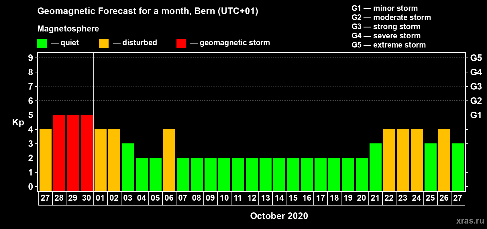 Geomagnetic storm forecast in Bern for Sep 27, 2020
