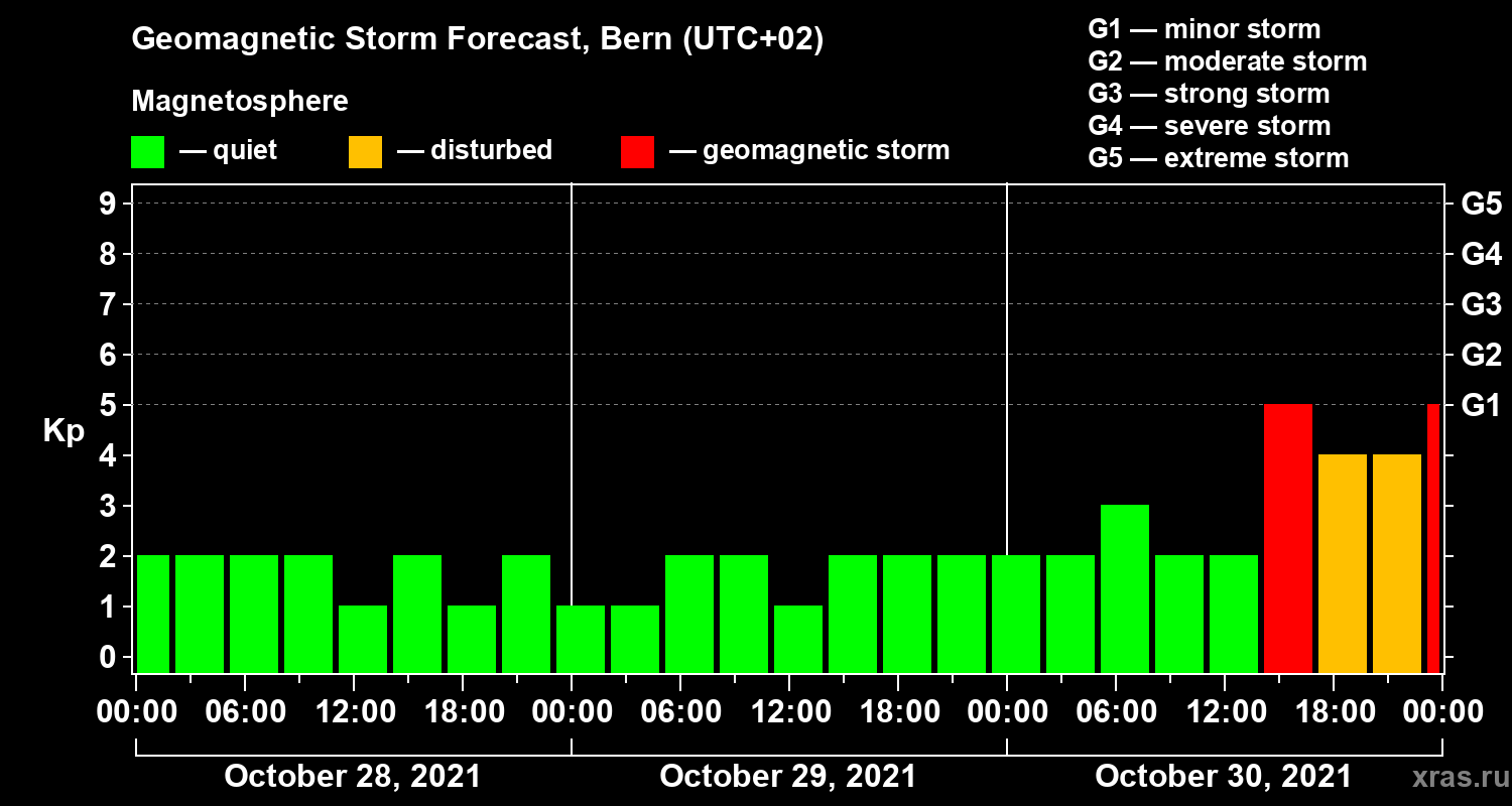 Geomagnetic storm forecast in Bern for Oct 28, 2021