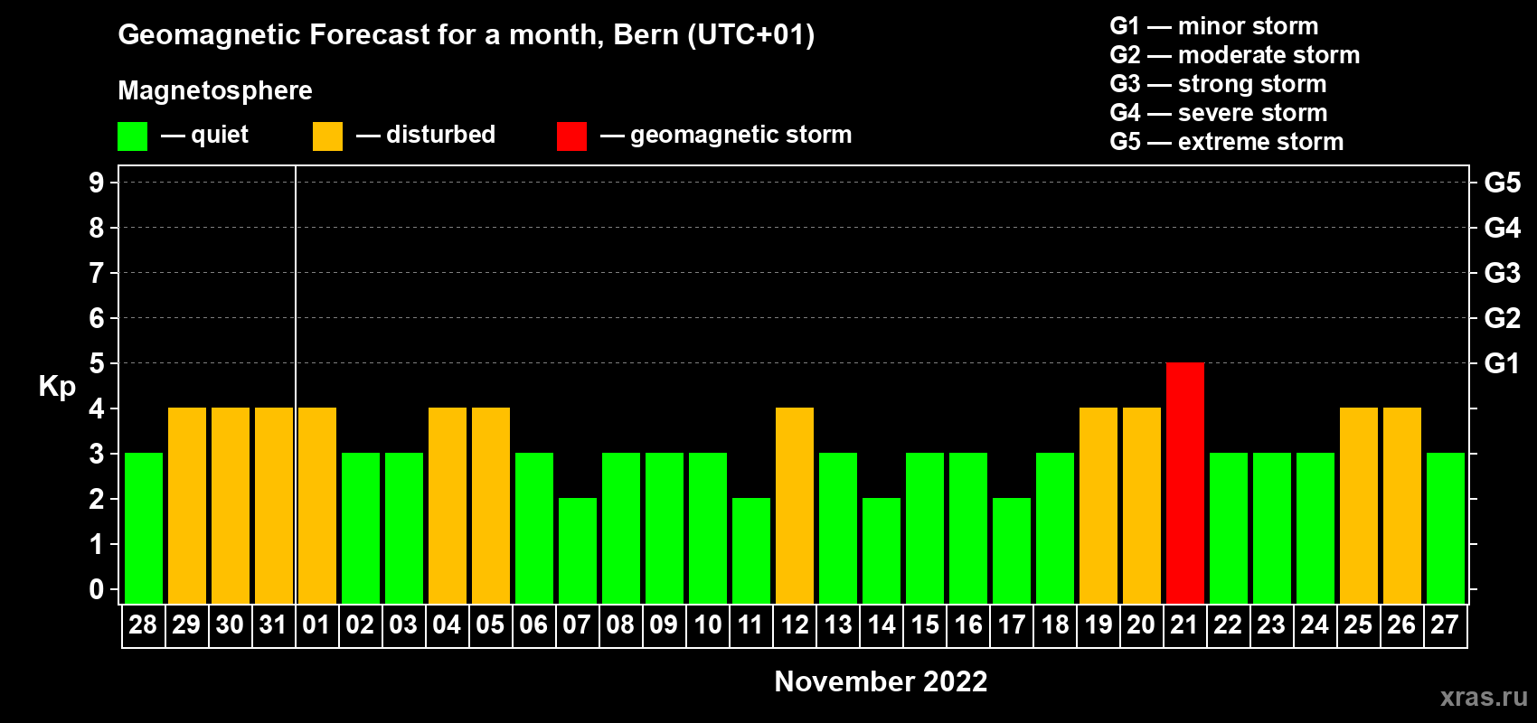 Geomagnetic storm forecast in Bern for Oct 28, 2022