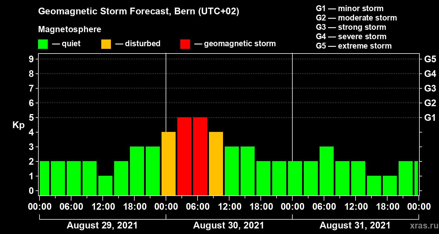 Geomagnetic storm forecast in Bern for Aug 29, 2021