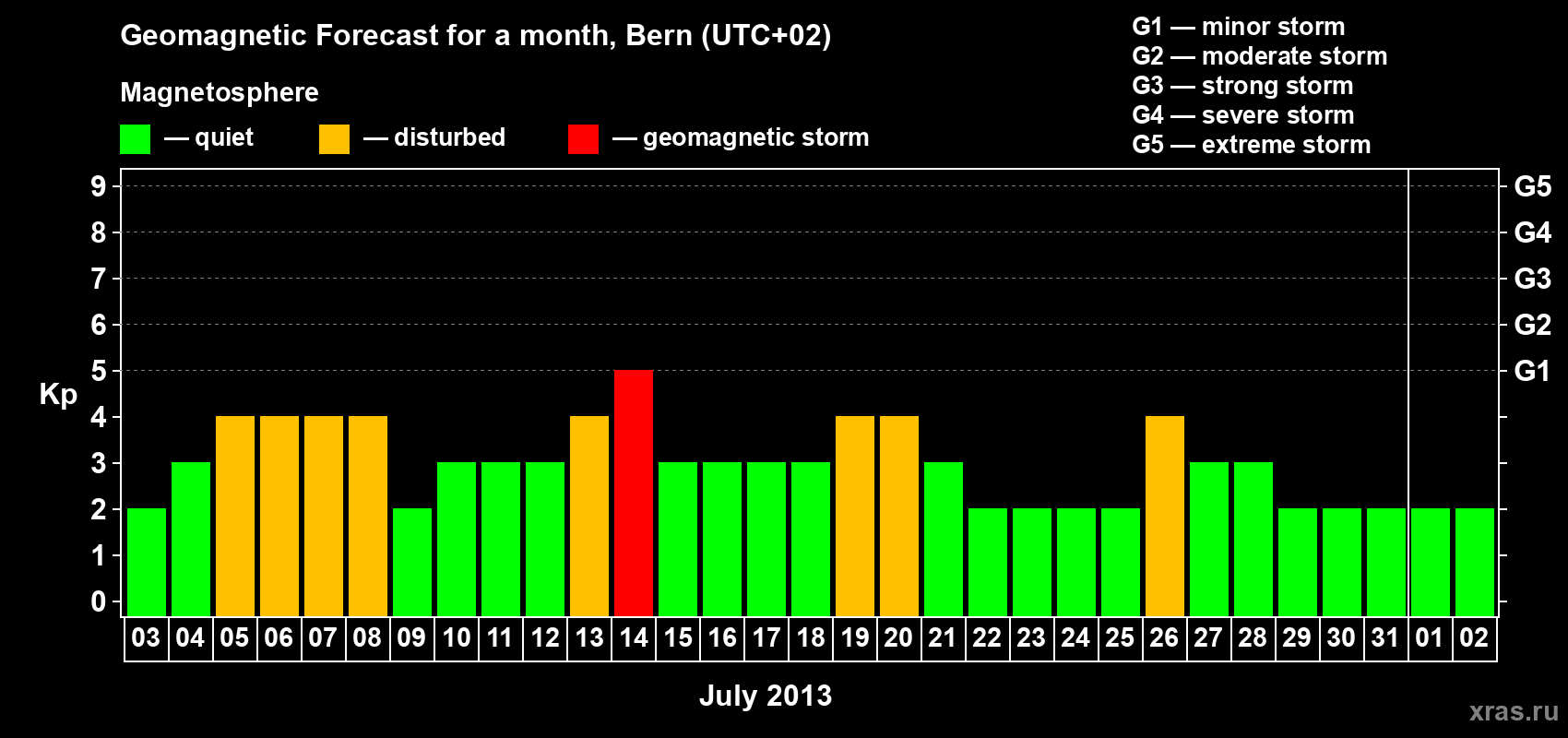 Geomagnetic storm forecast in Bern for Jul 03, 2013