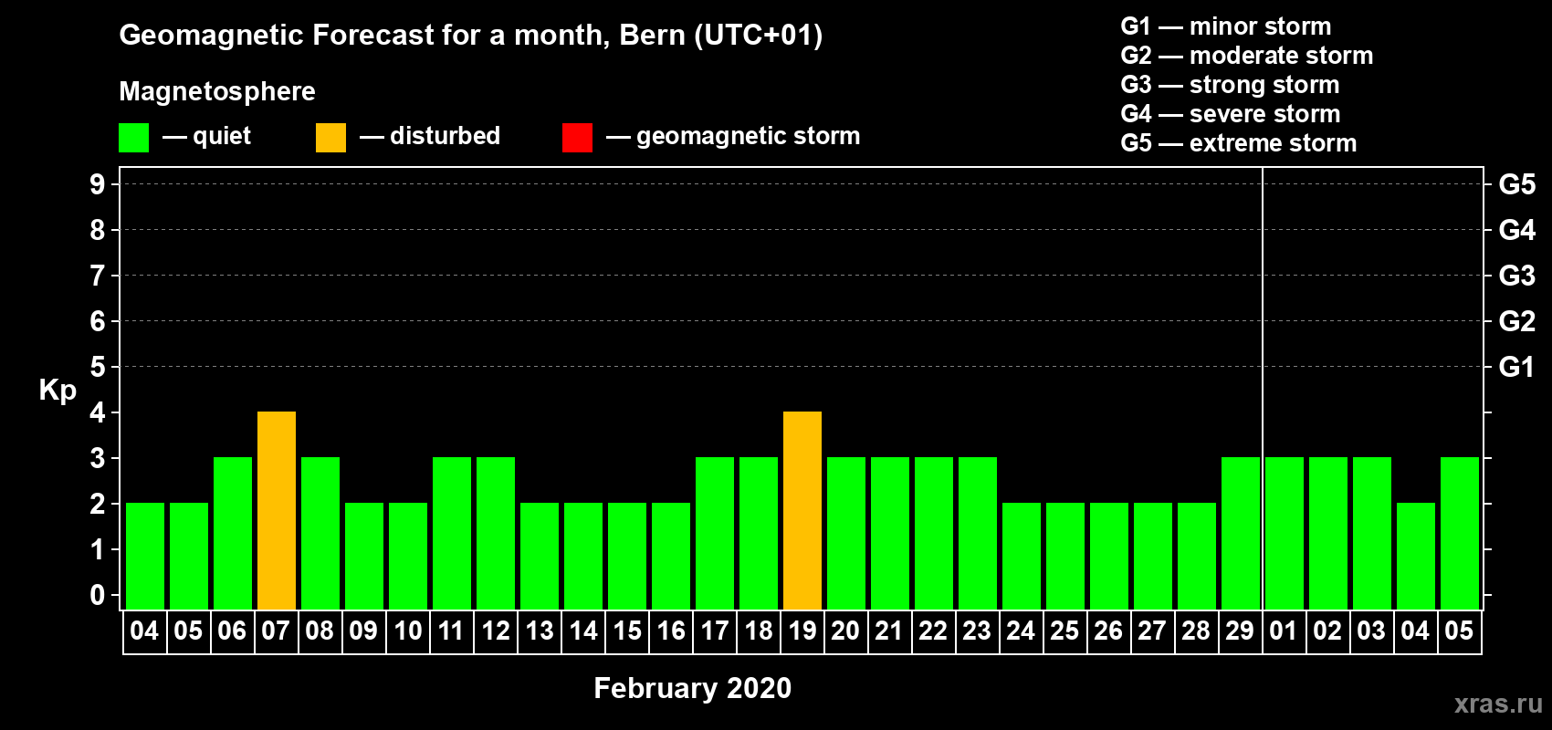 Geomagnetic storm forecast in Bern for Feb 04, 2020