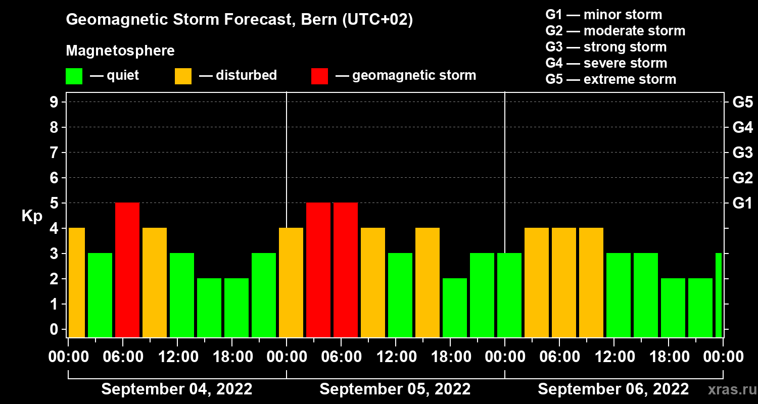 Geomagnetic storm forecast in Bern for Sep 04, 2022