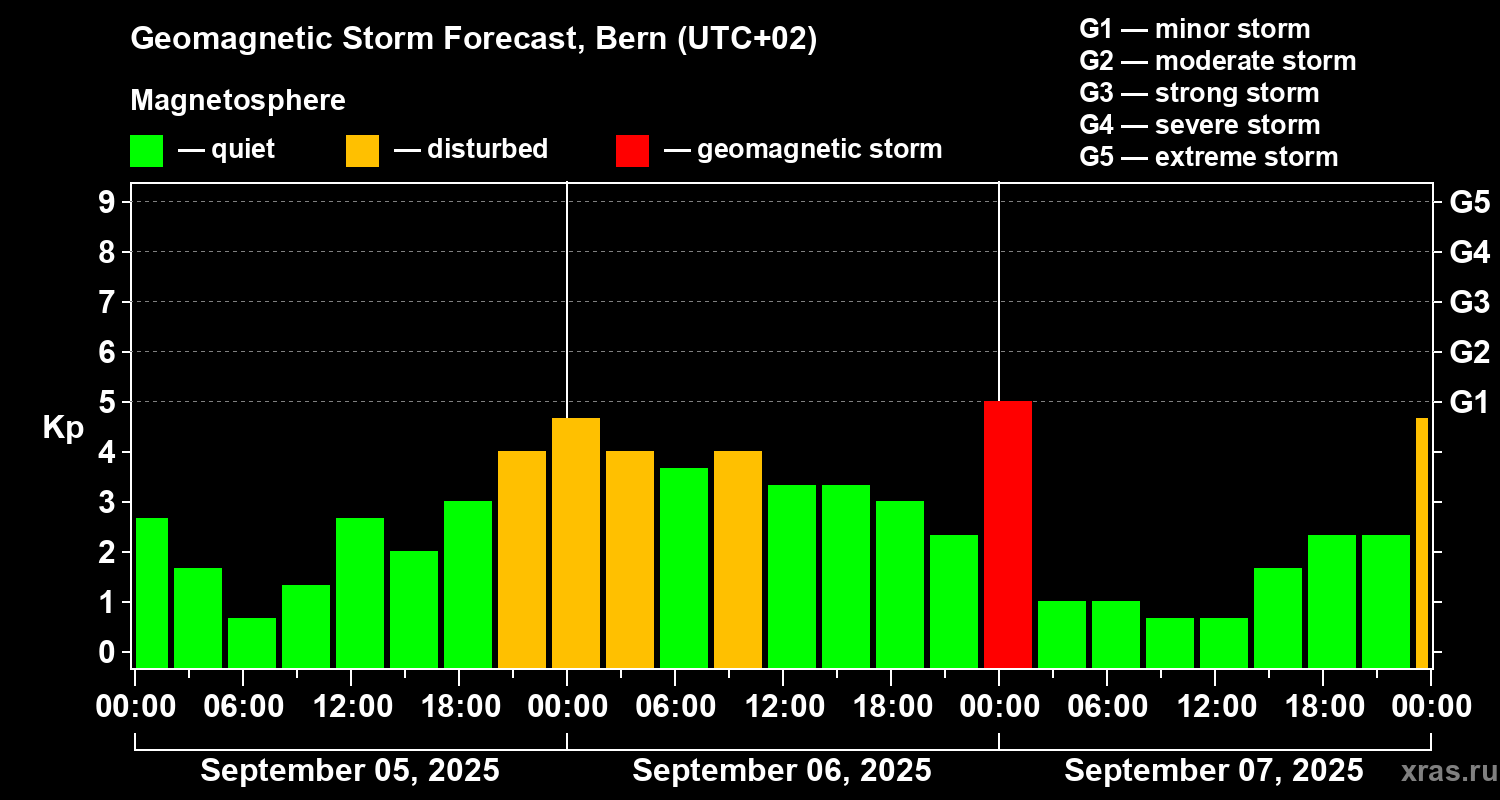 Geomagnetic storm forecast in Bern for Sep 05, 2025