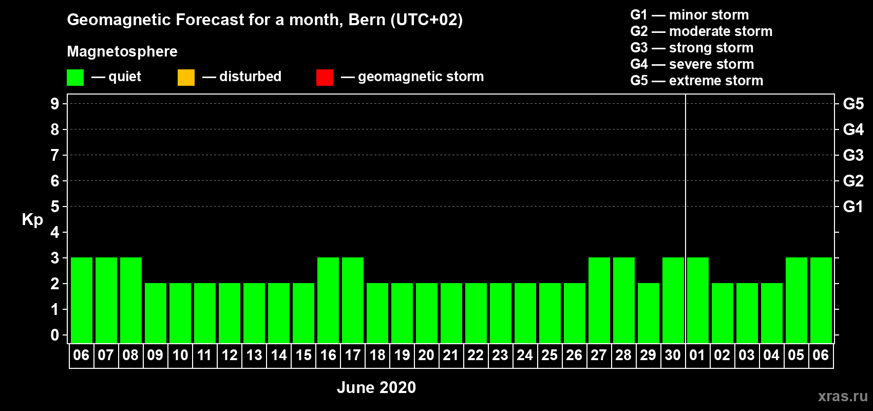Geomagnetic storm forecast in Bern for Jun 06, 2020