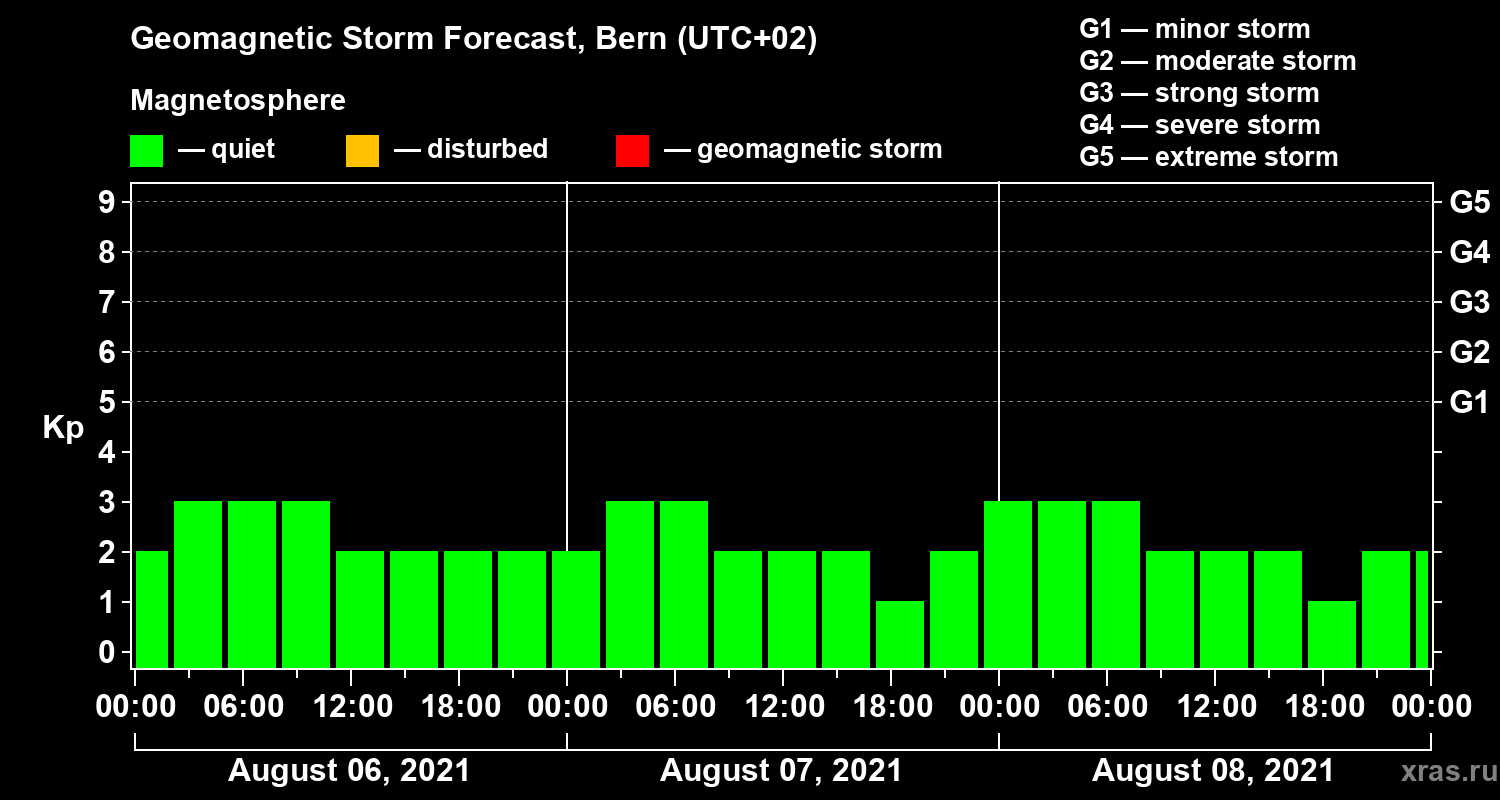 Geomagnetic storm forecast in Bern for Aug 06, 2021