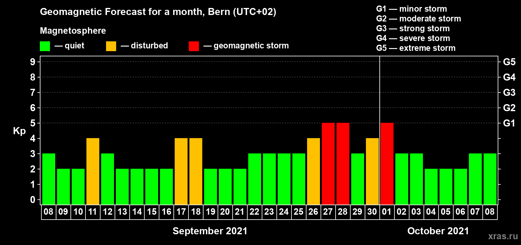 Geomagnetic storm forecast in Bern for Sep 08, 2021