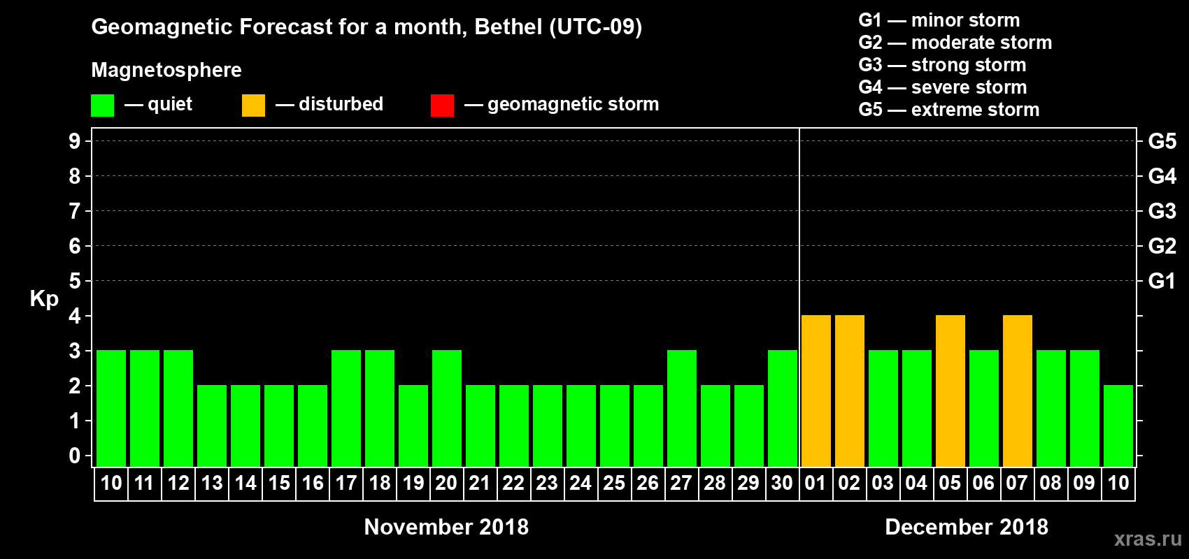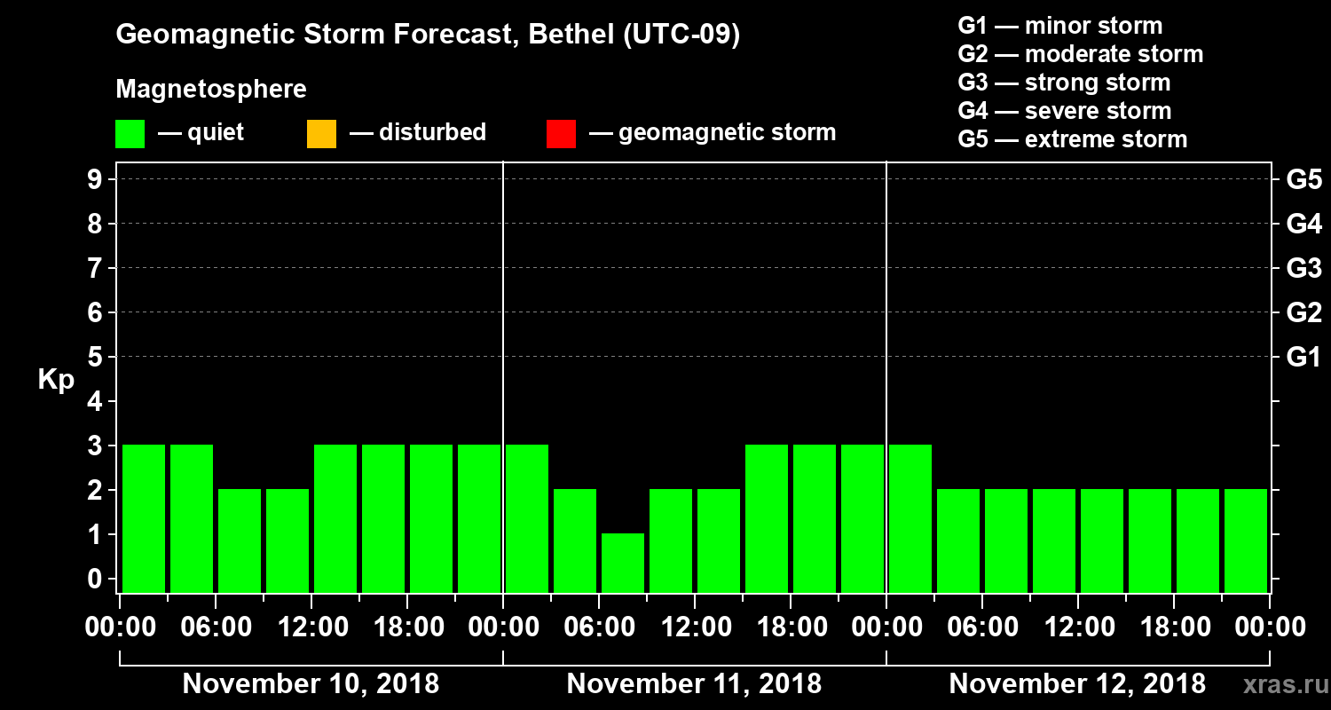 Geomagnetic storm forecast in Bethel for Nov 10, 2018