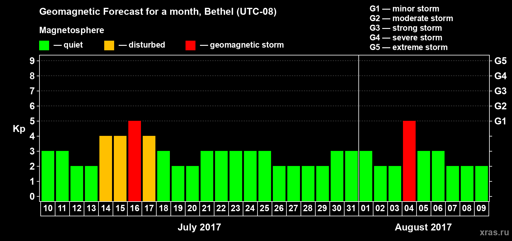 Geomagnetic storm forecast in Bethel for Jul 10, 2017