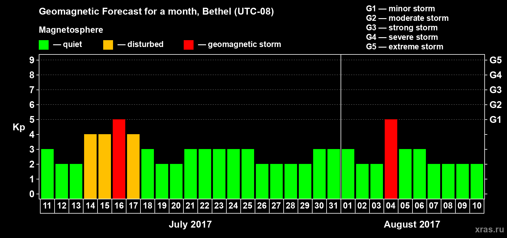 Geomagnetic storm forecast in Bethel for Jul 11, 2017