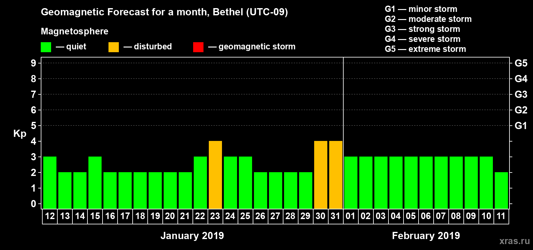 Geomagnetic storm forecast in Bethel for Jan 12, 2019