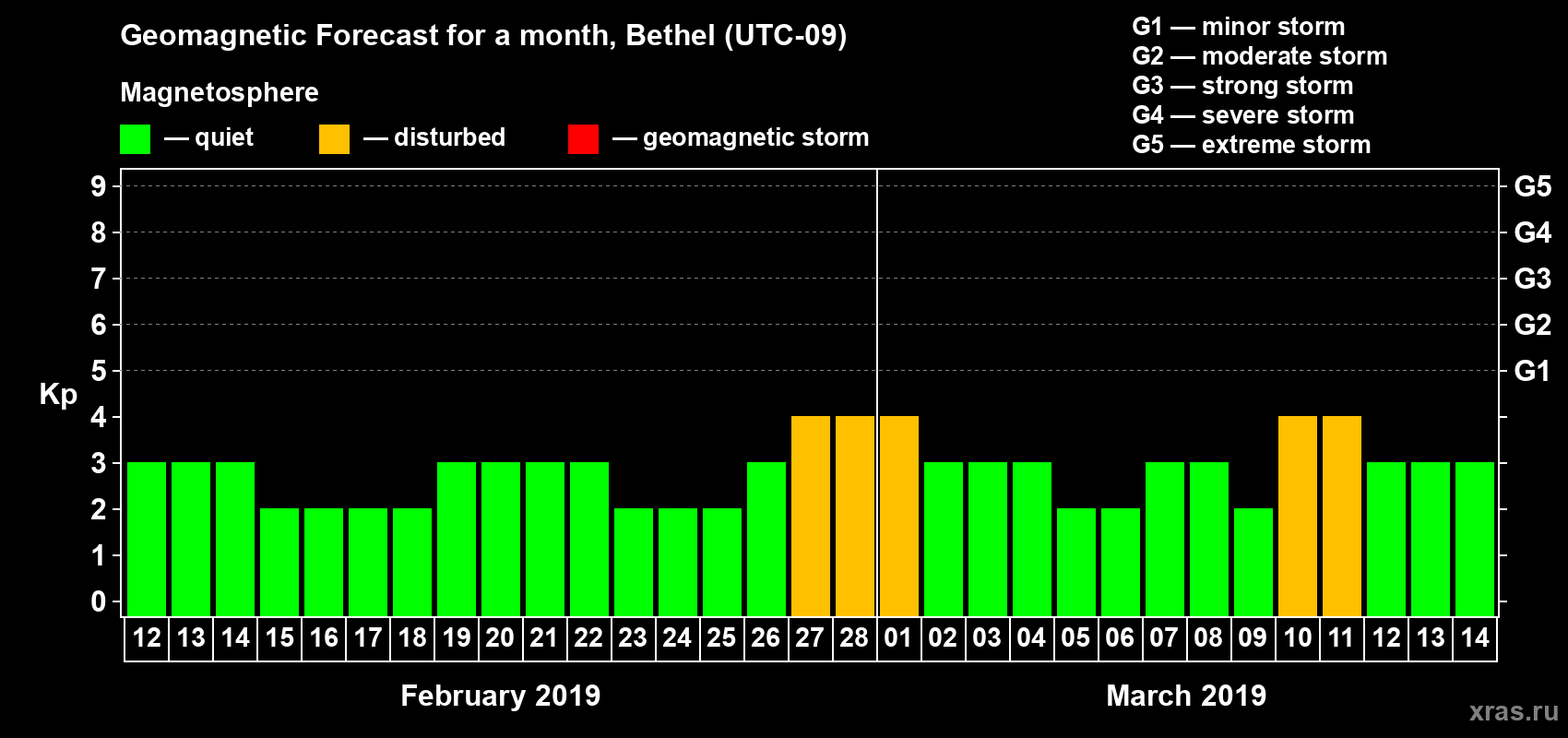 Geomagnetic storm forecast in Bethel for Feb 12, 2019