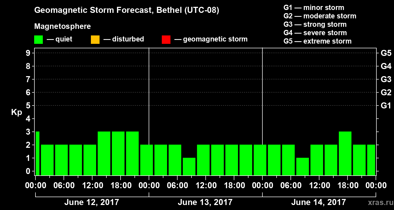 Geomagnetic storm forecast in Bethel for Jun 12, 2017