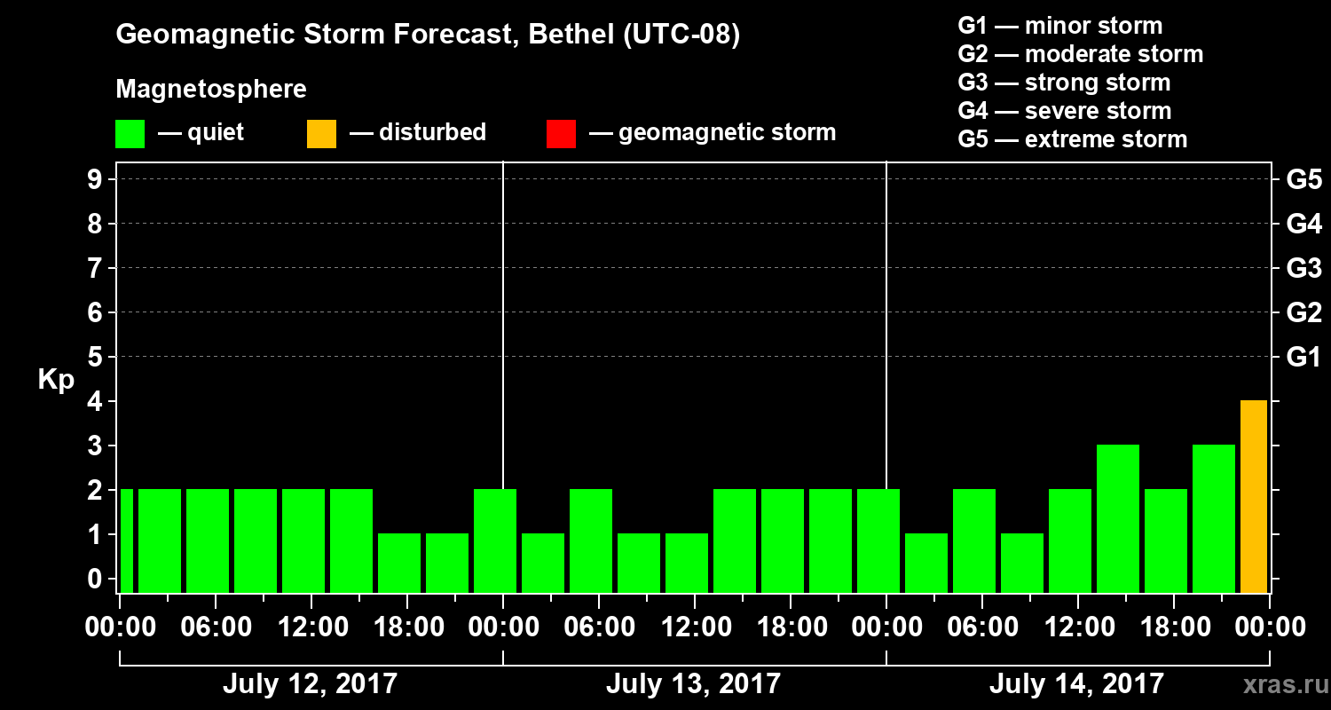 Geomagnetic storm forecast in Bethel for Jul 12, 2017