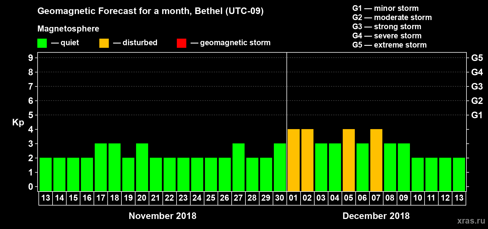 Geomagnetic storm forecast in Bethel for Nov 13, 2018