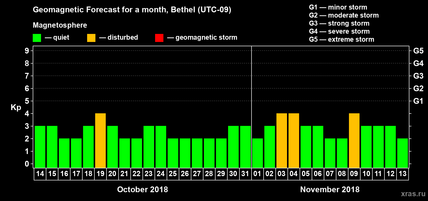 Geomagnetic storm forecast in Bethel for Oct 14, 2018