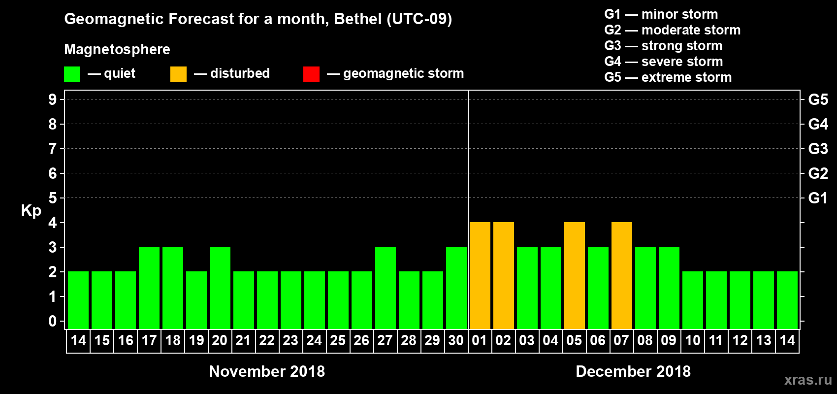 Geomagnetic storm forecast in Bethel for Nov 14, 2018