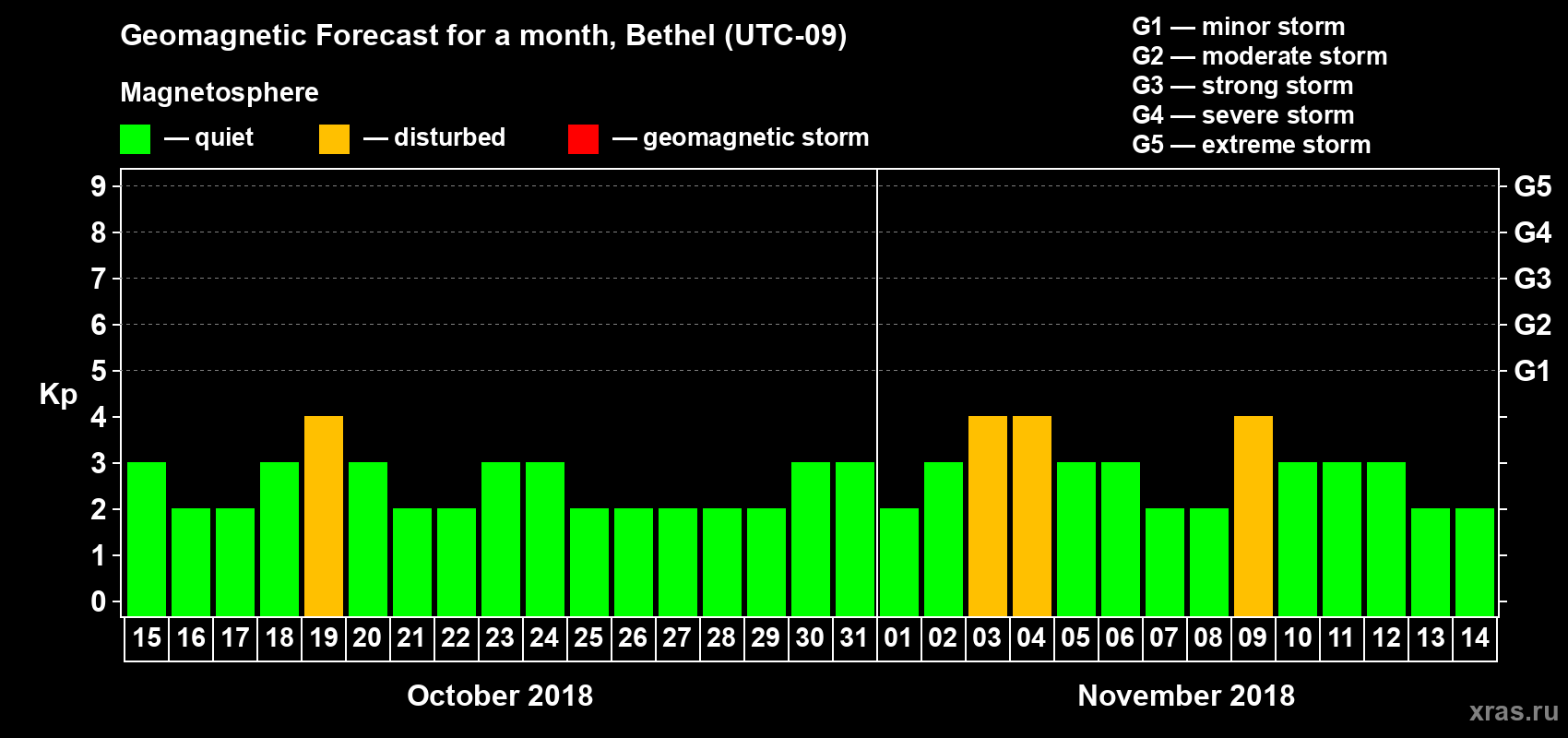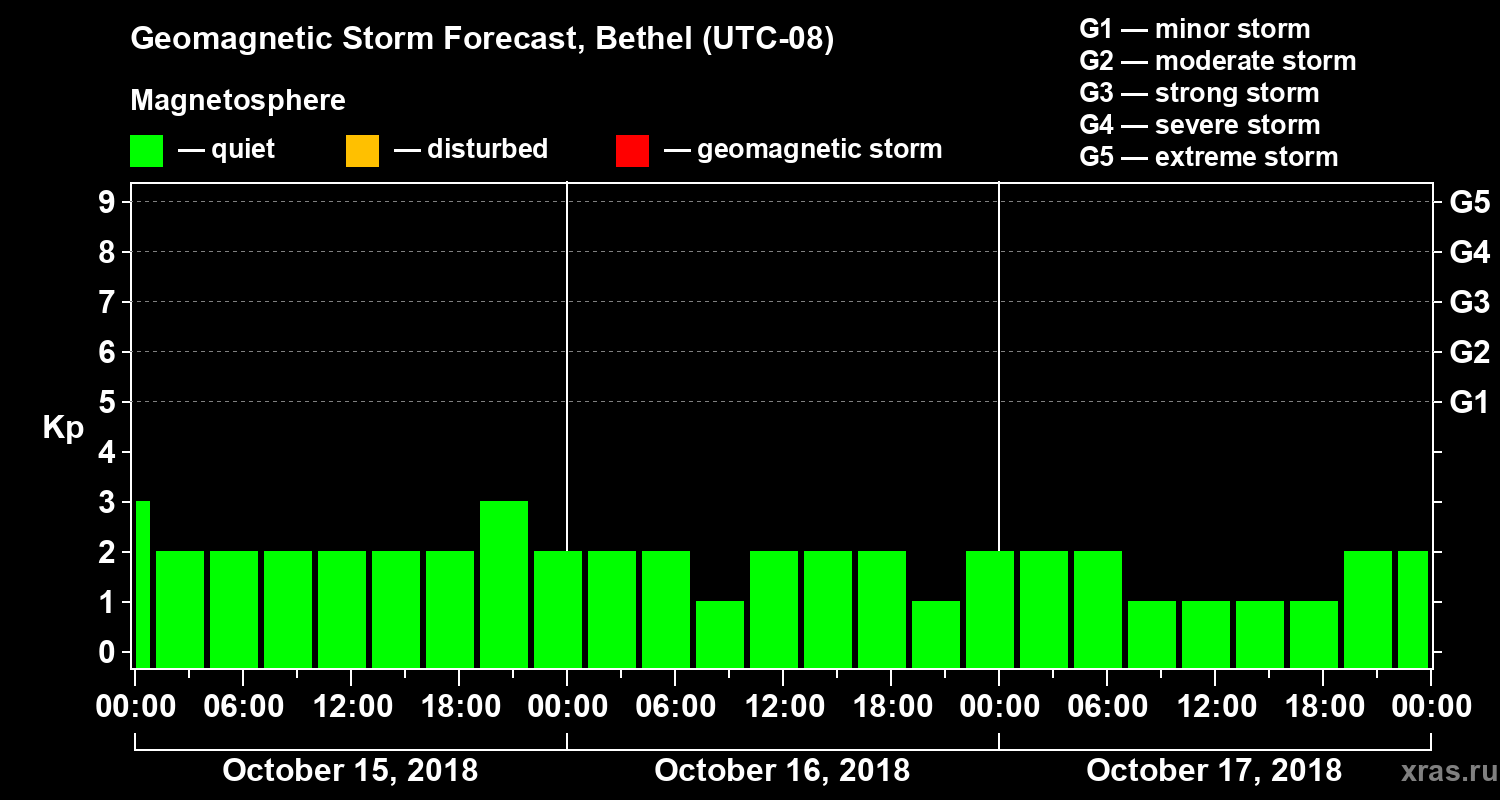 Geomagnetic storm forecast in Bethel for Oct 15, 2018