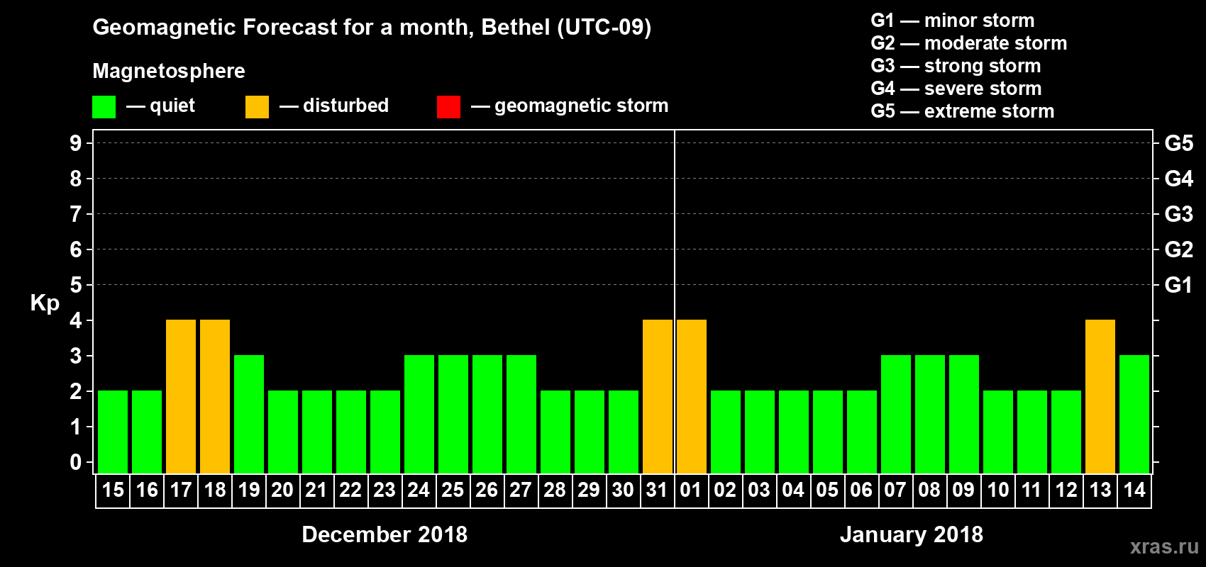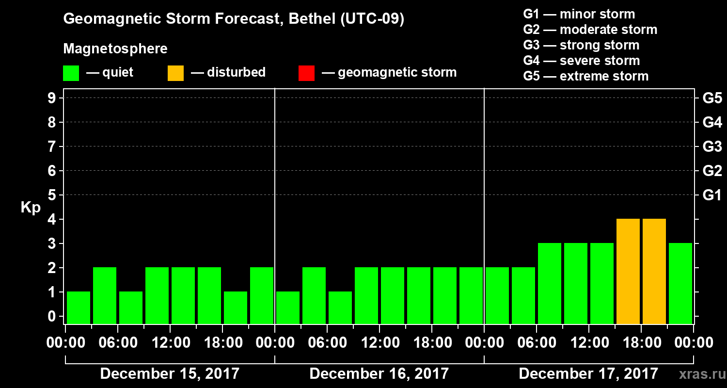 Geomagnetic storm forecast in Bethel for Dec 15, 2017