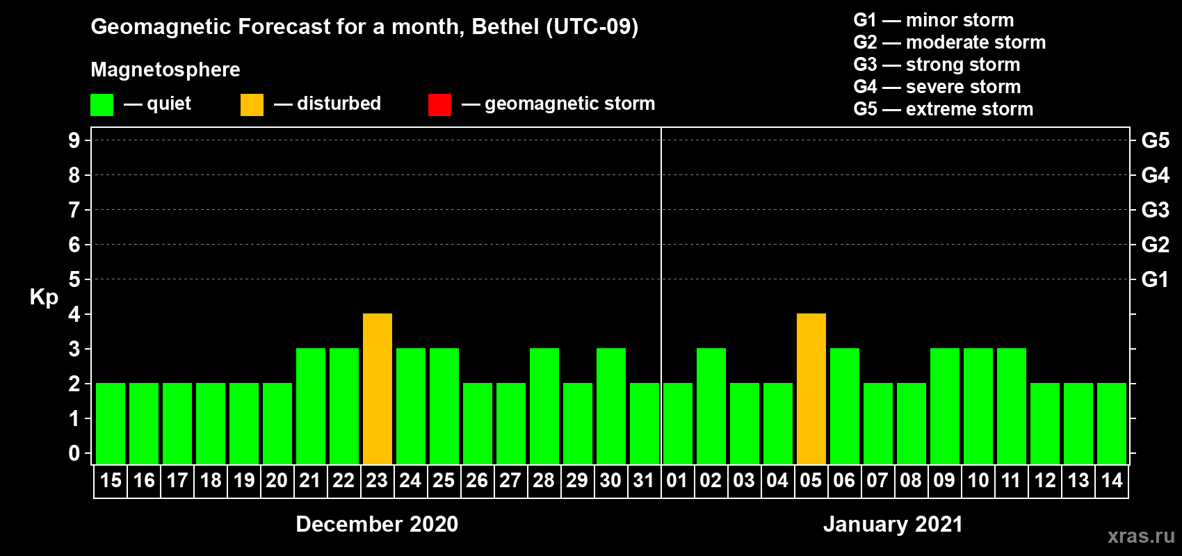 Geomagnetic activity forecast in Bethel — Dec 15, 2020