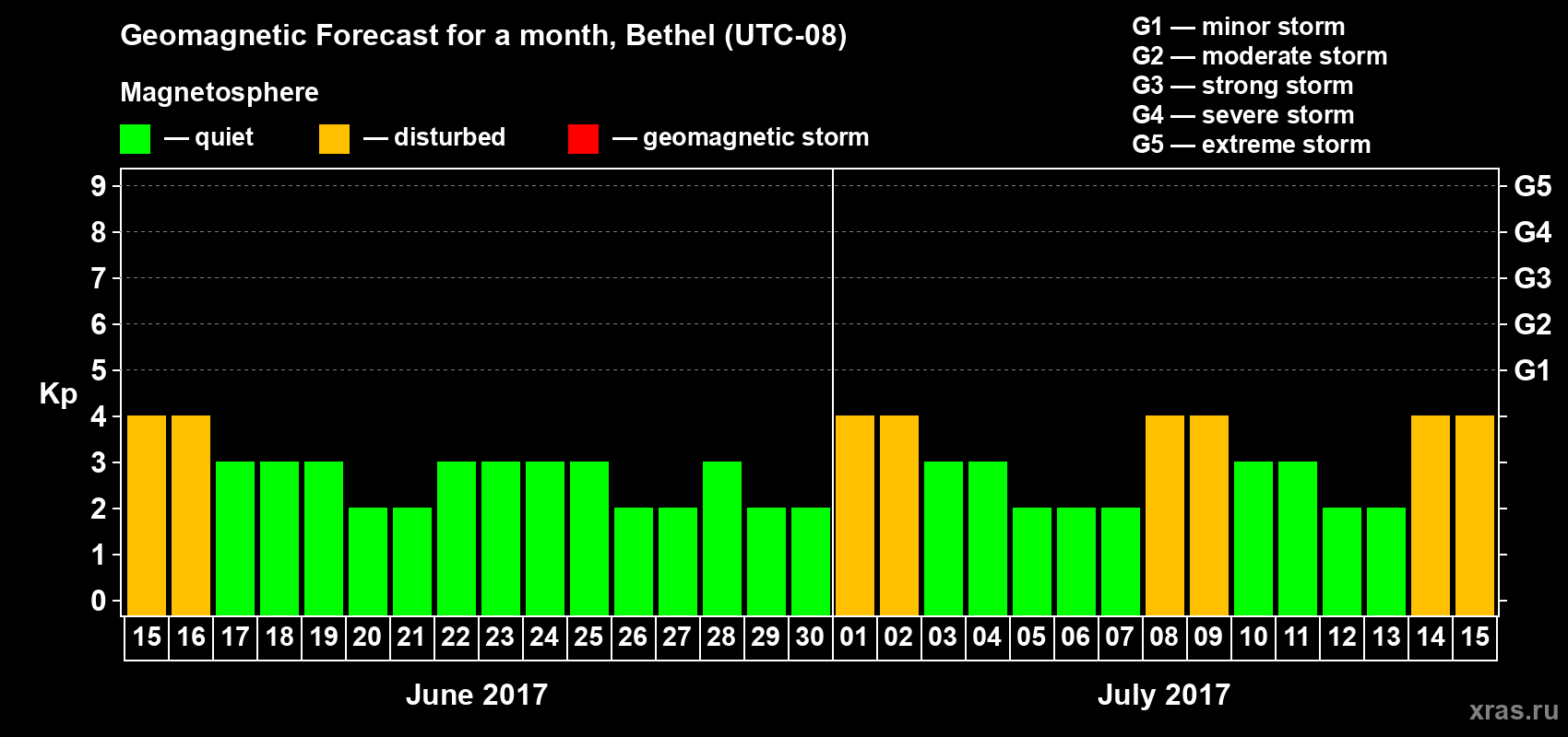 Geomagnetic storm forecast in Bethel for Jun 15, 2017