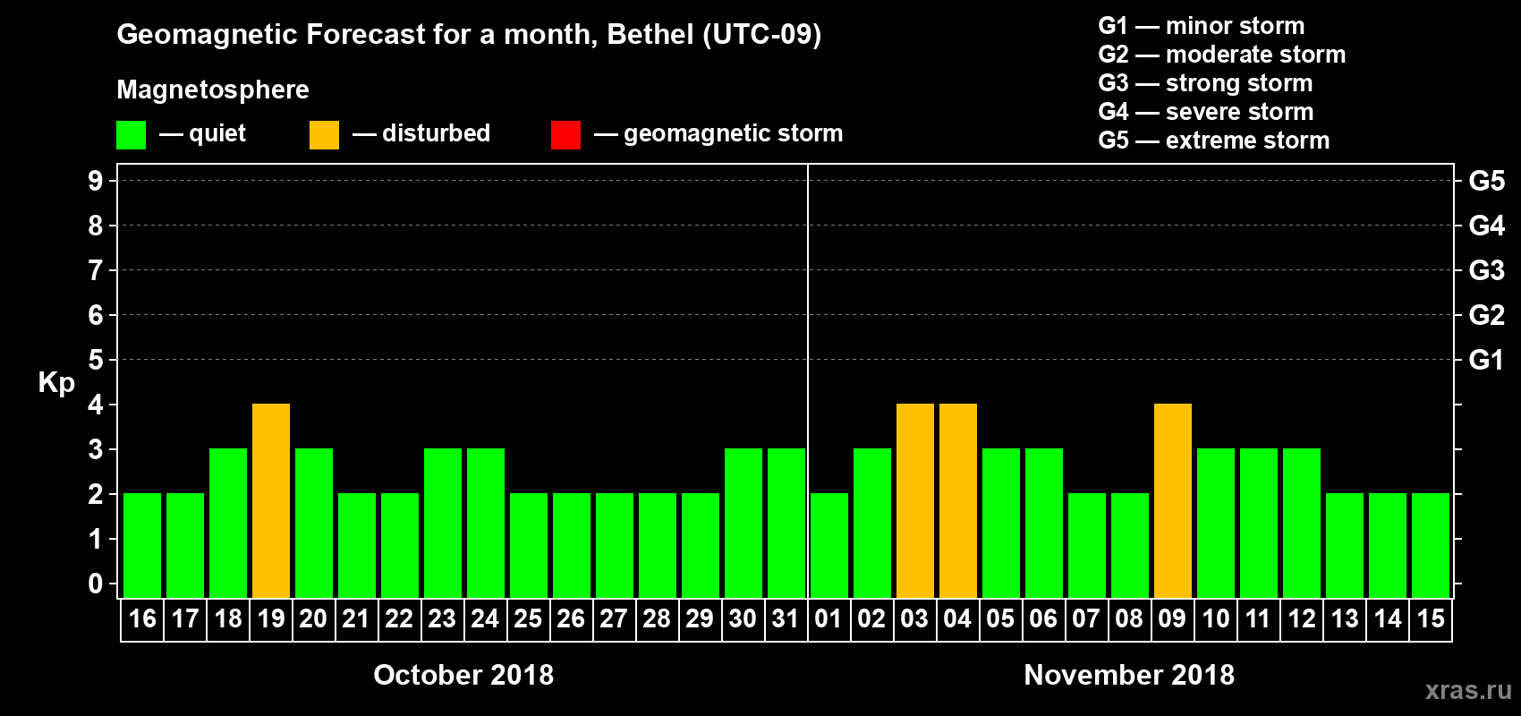 Geomagnetic storm forecast in Bethel for Oct 16, 2018