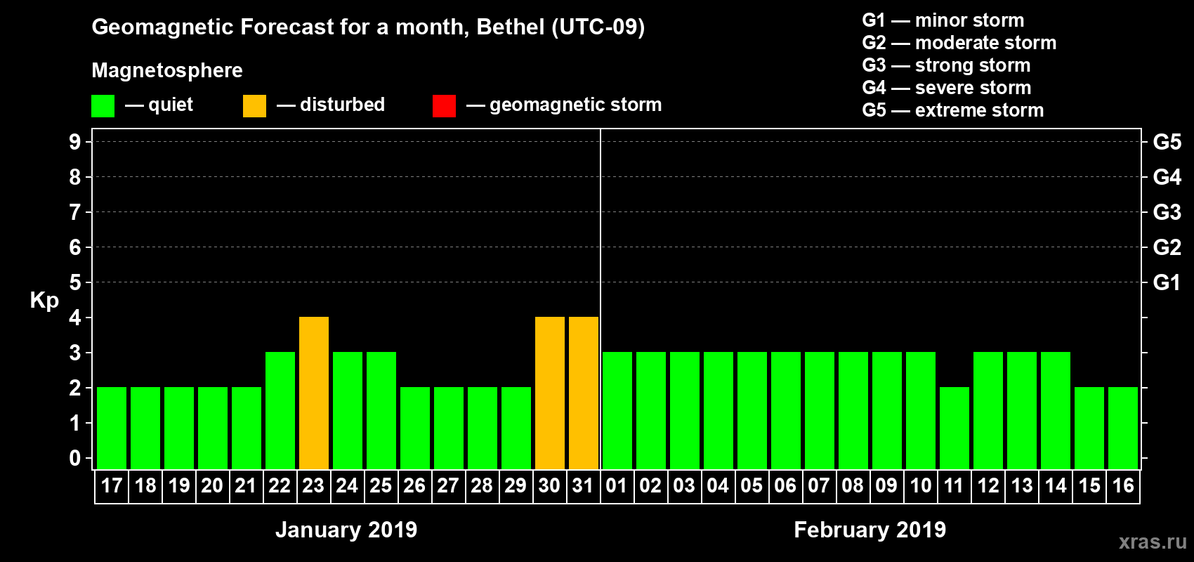 Geomagnetic storm forecast in Bethel for Jan 17, 2019