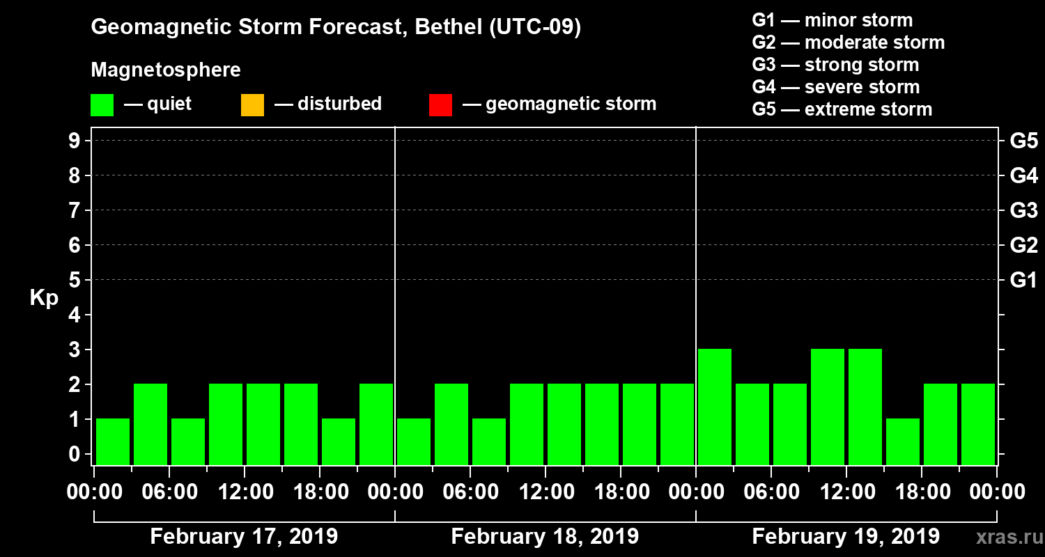Geomagnetic storm forecast in Bethel for Feb 17, 2019