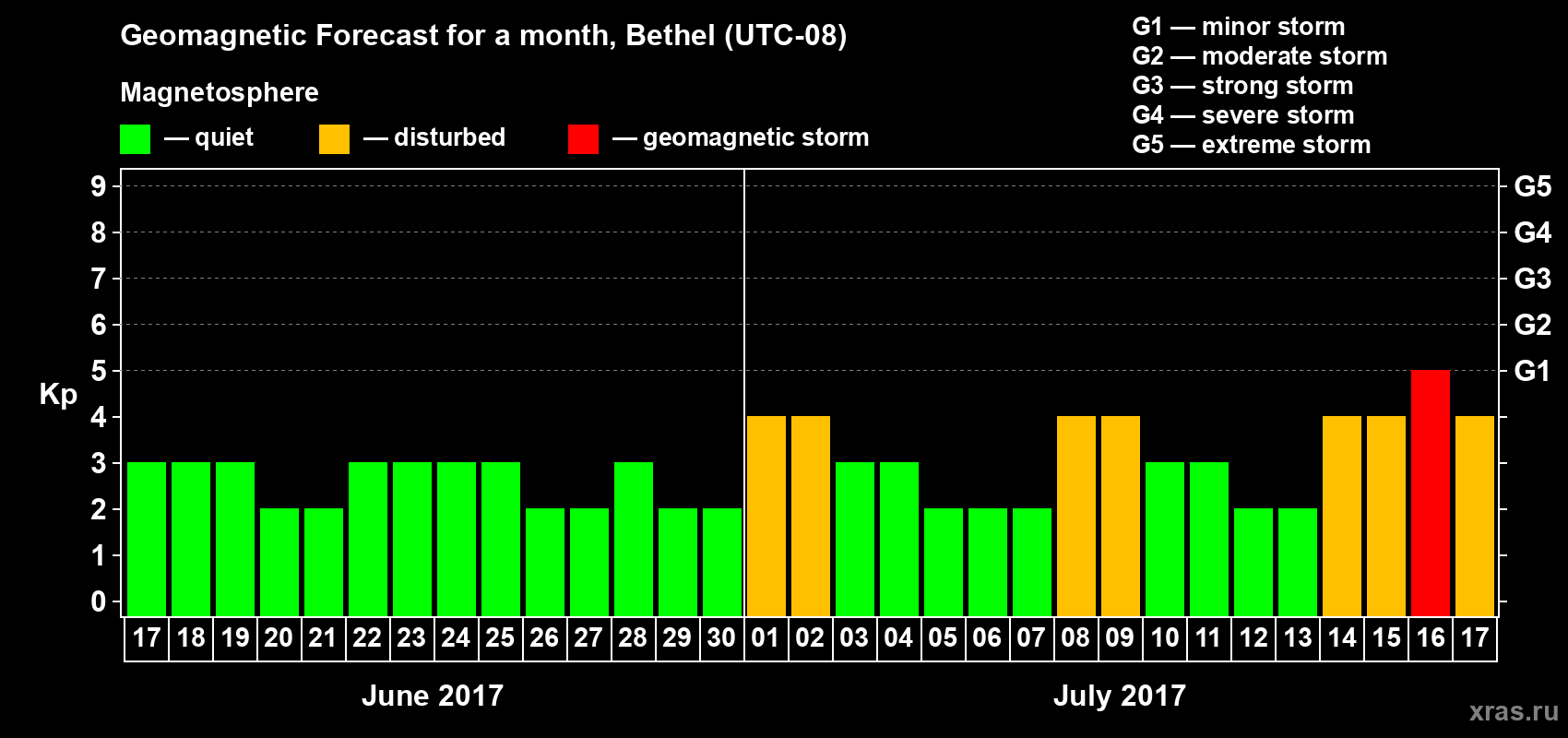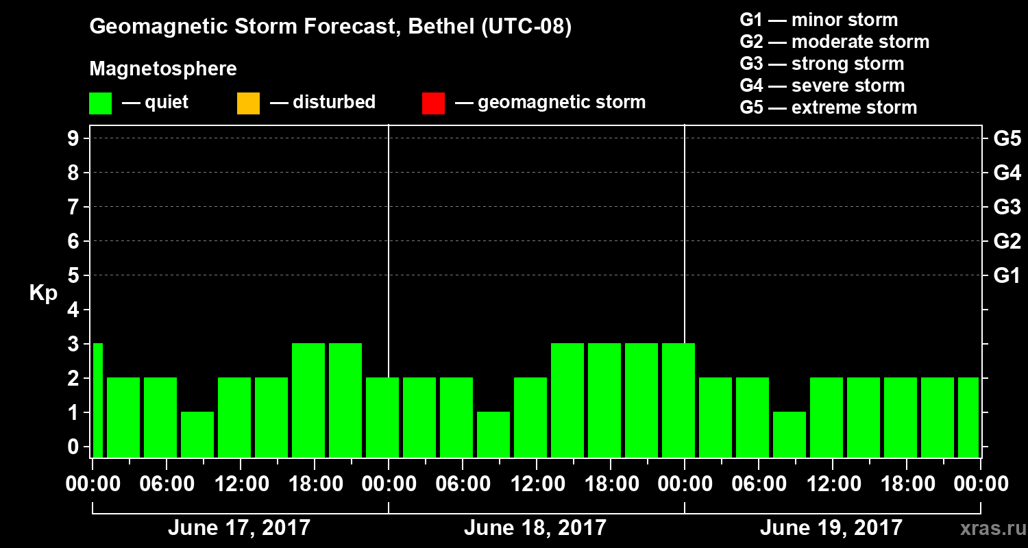 Geomagnetic storm forecast in Bethel for Jun 17, 2017