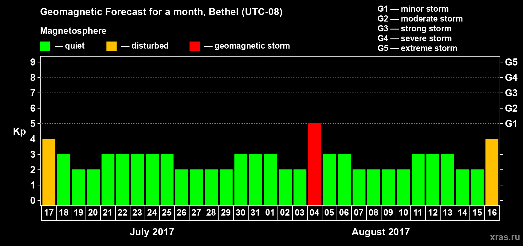 Geomagnetic storm forecast in Bethel for Jul 17, 2017