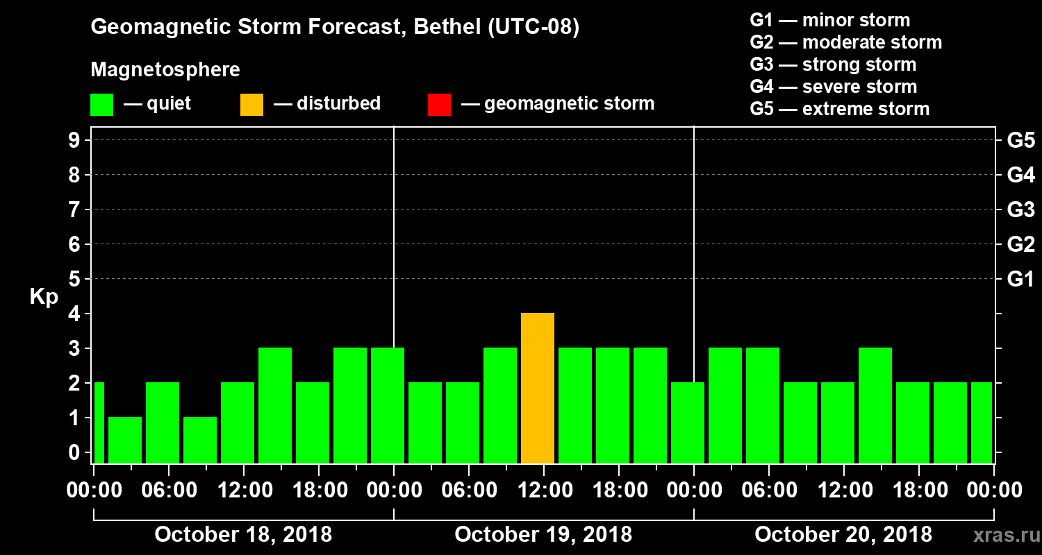 Geomagnetic storm forecast in Bethel for Oct 18, 2018
