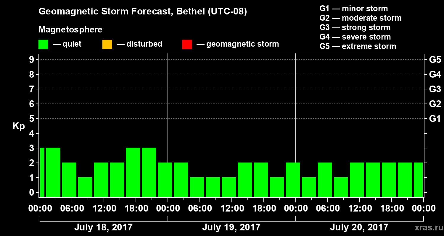 Geomagnetic storm forecast in Bethel for Jul 18, 2017