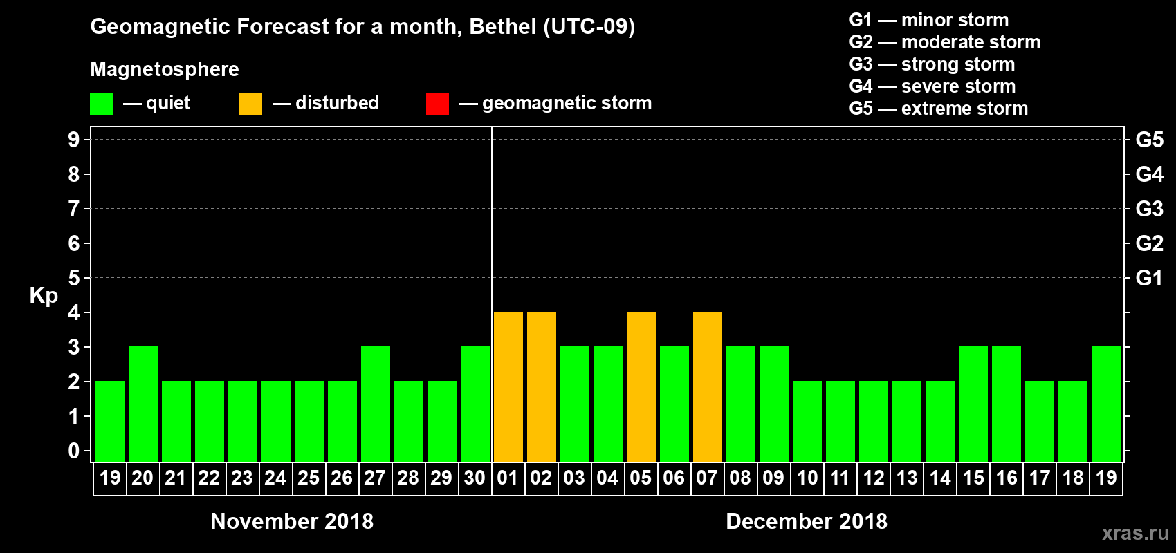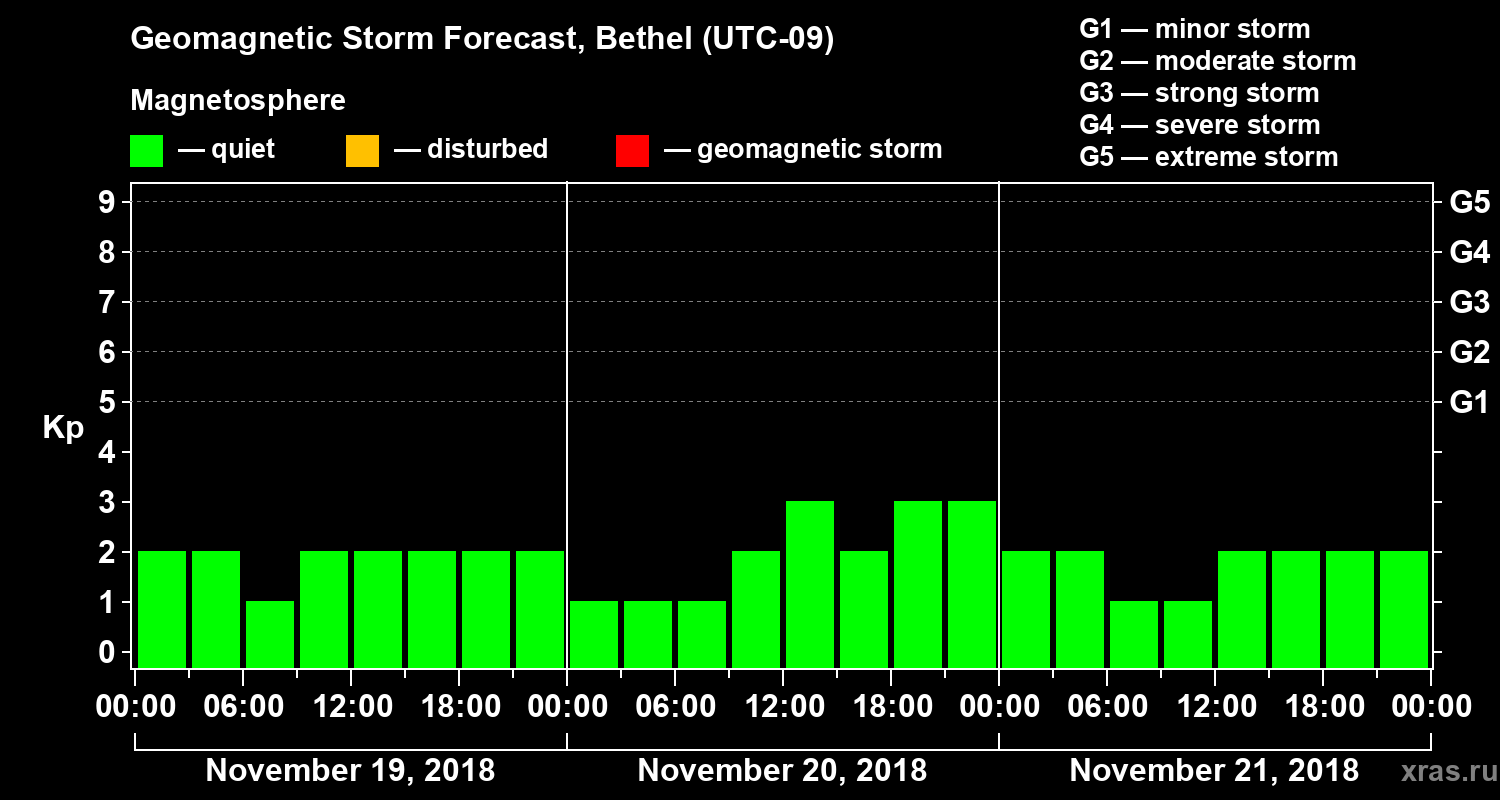 Geomagnetic storm forecast in Bethel for Nov 19, 2018