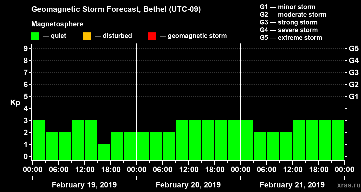 Geomagnetic storm forecast in Bethel for Feb 19, 2019