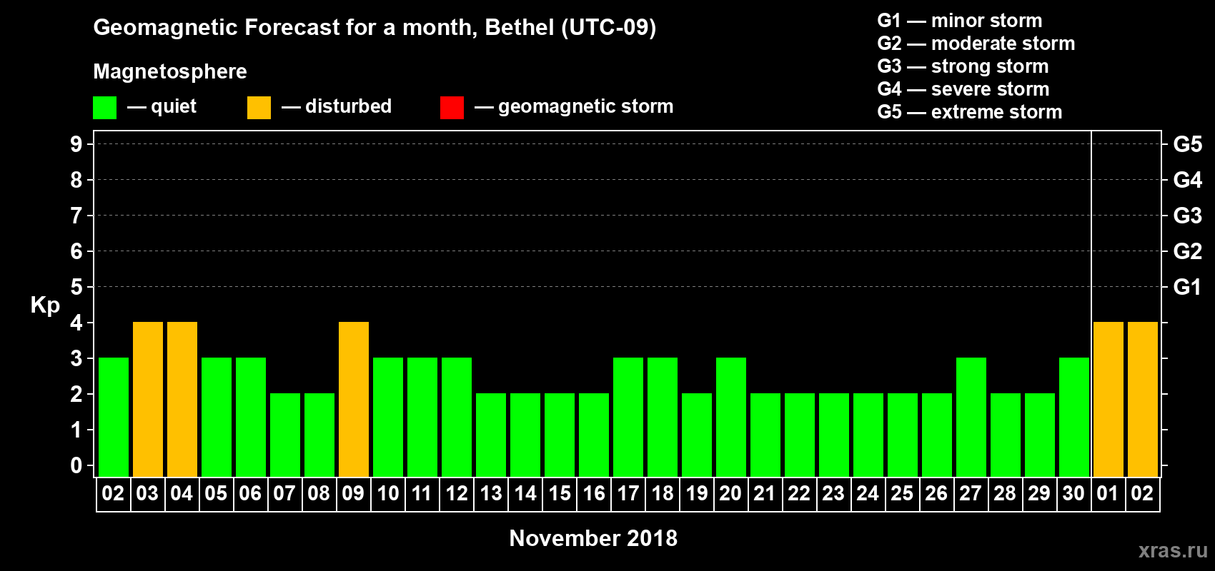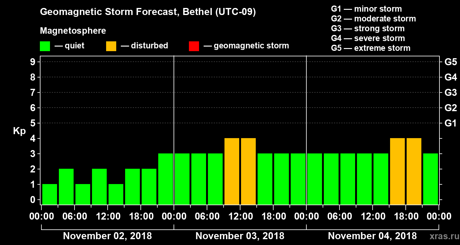 Geomagnetic storm forecast in Bethel for Nov 02, 2018