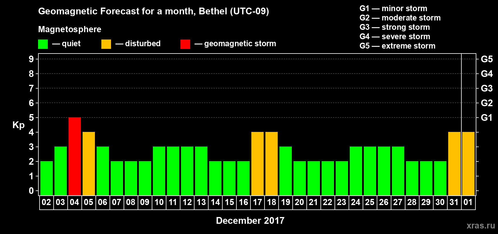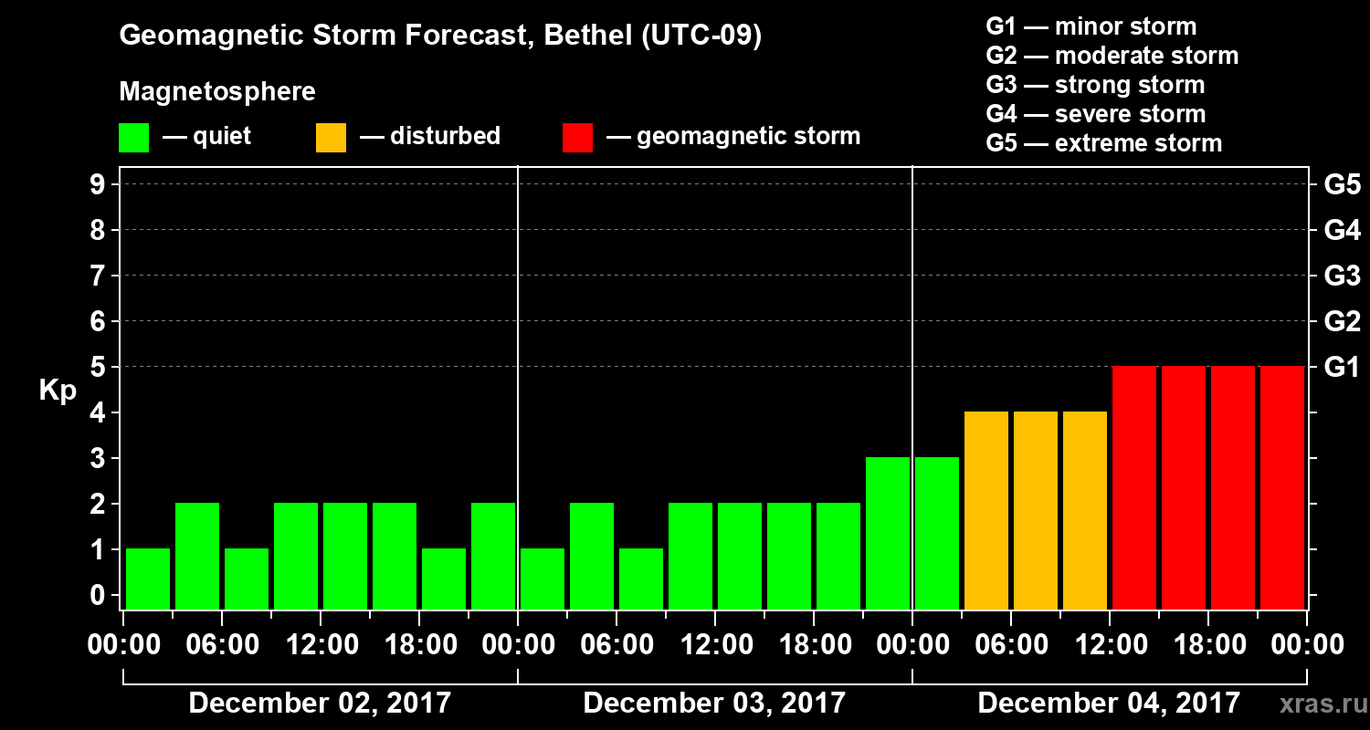 Geomagnetic storm forecast in Bethel for Dec 02, 2017
