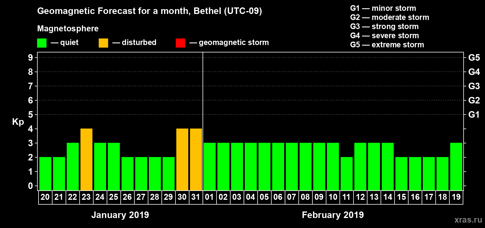 Geomagnetic storm forecast in Bethel for Jan 20, 2019