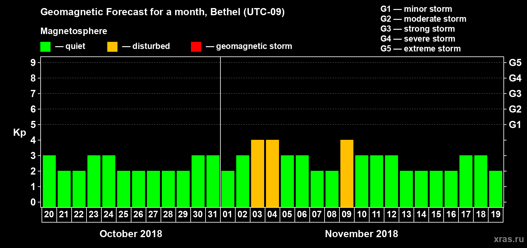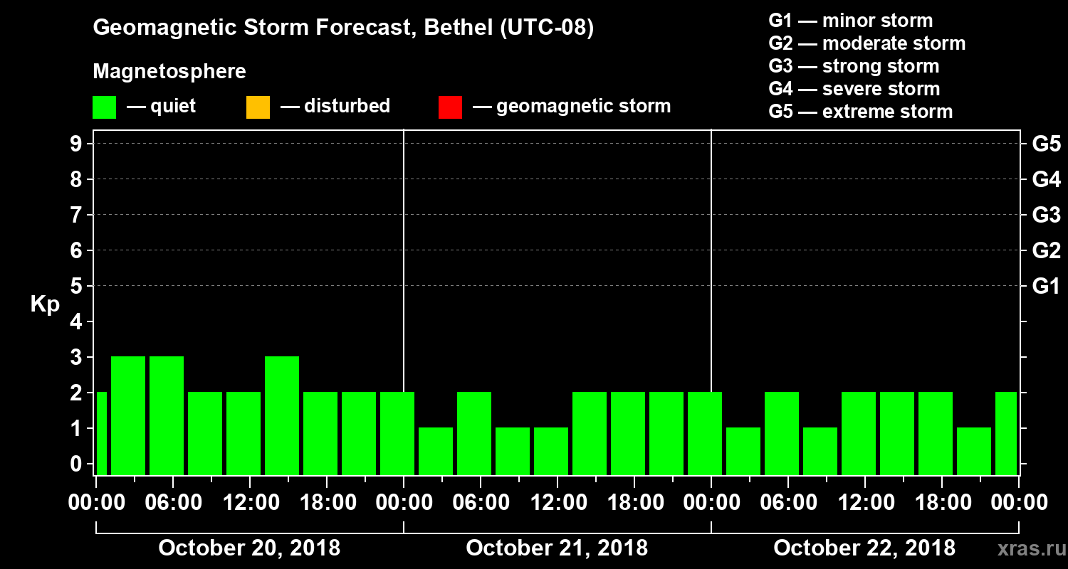 Geomagnetic storm forecast in Bethel for Oct 20, 2018