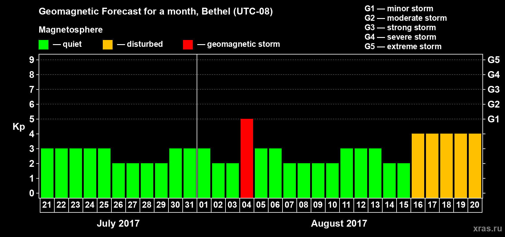 Geomagnetic storm forecast in Bethel for Jul 21, 2017