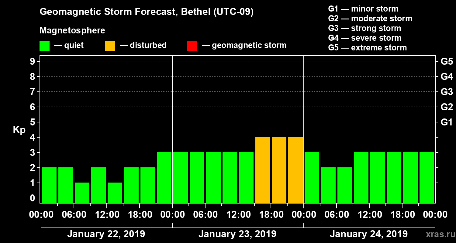 Geomagnetic storm forecast in Bethel for Jan 22, 2019