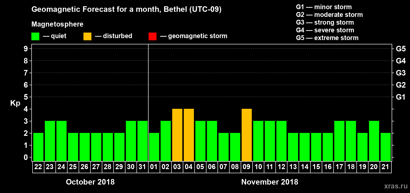 Geomagnetic storm forecast in Bethel for Oct 22, 2018
