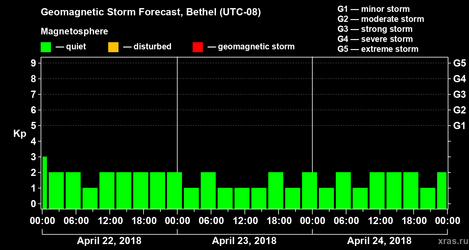 Geomagnetic storm forecast in Bethel for Apr 22, 2018