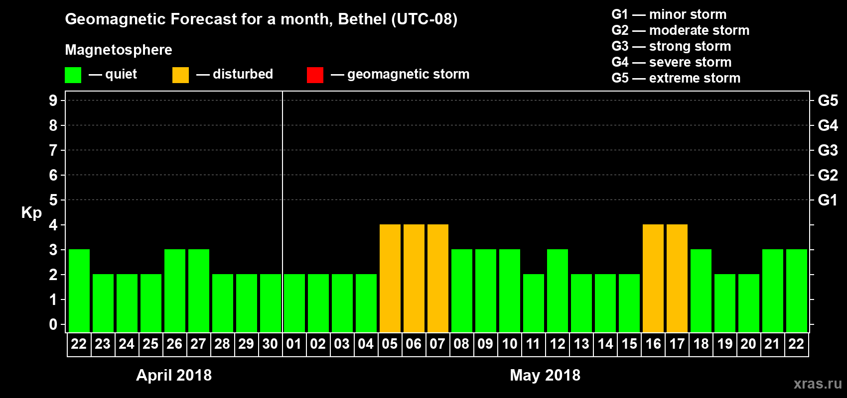 Geomagnetic activity forecast in Bethel — Apr 22, 2018