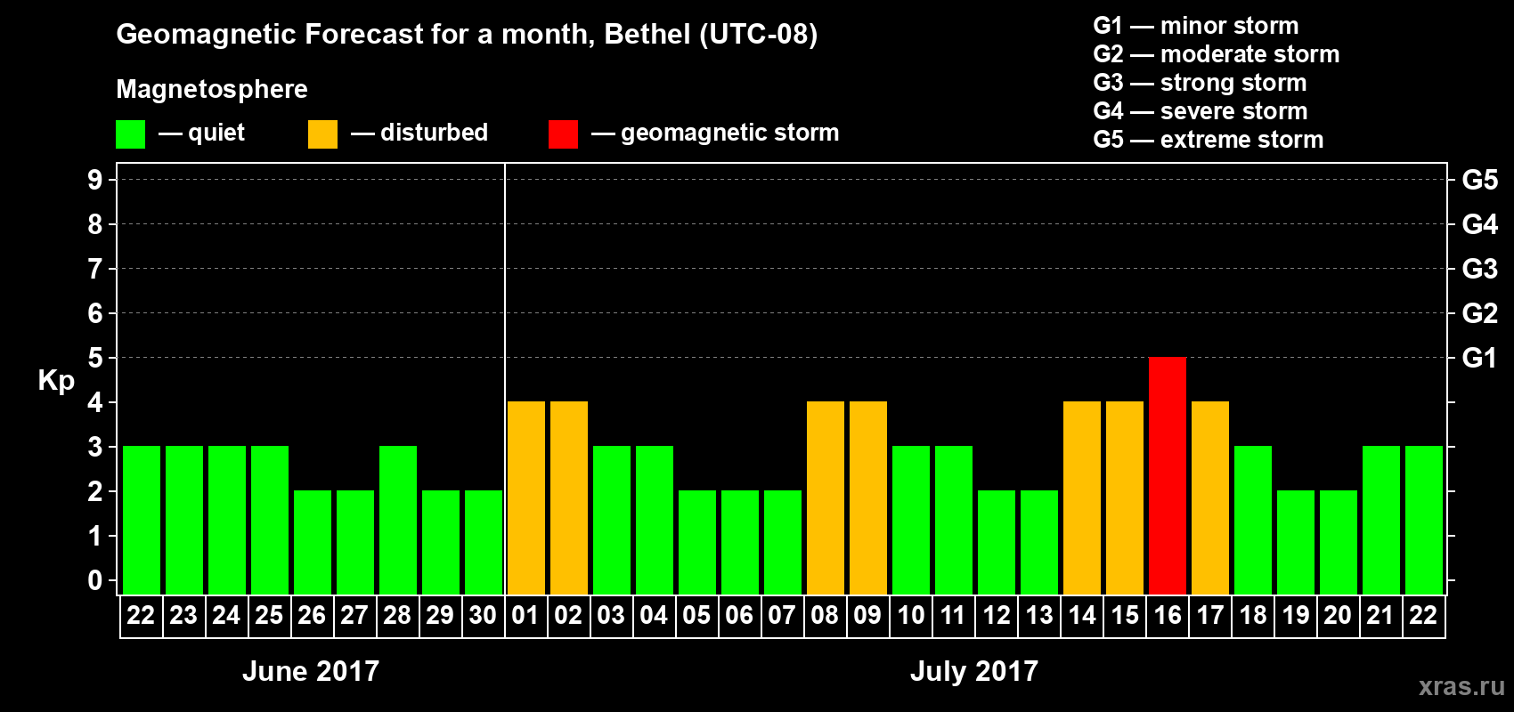 Geomagnetic storm forecast in Bethel for Jun 22, 2017