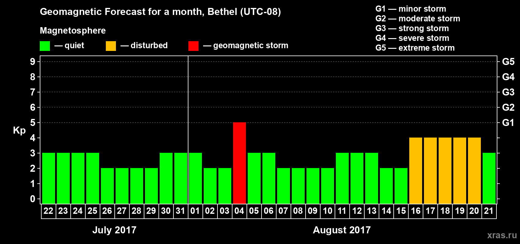 Geomagnetic storm forecast in Bethel for Jul 22, 2017