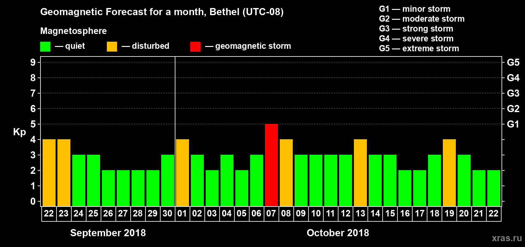 Geomagnetic storm forecast in Bethel for Sep 22, 2018