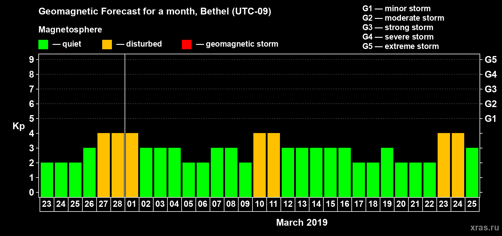 Geomagnetic storm forecast in Bethel for Feb 23, 2019