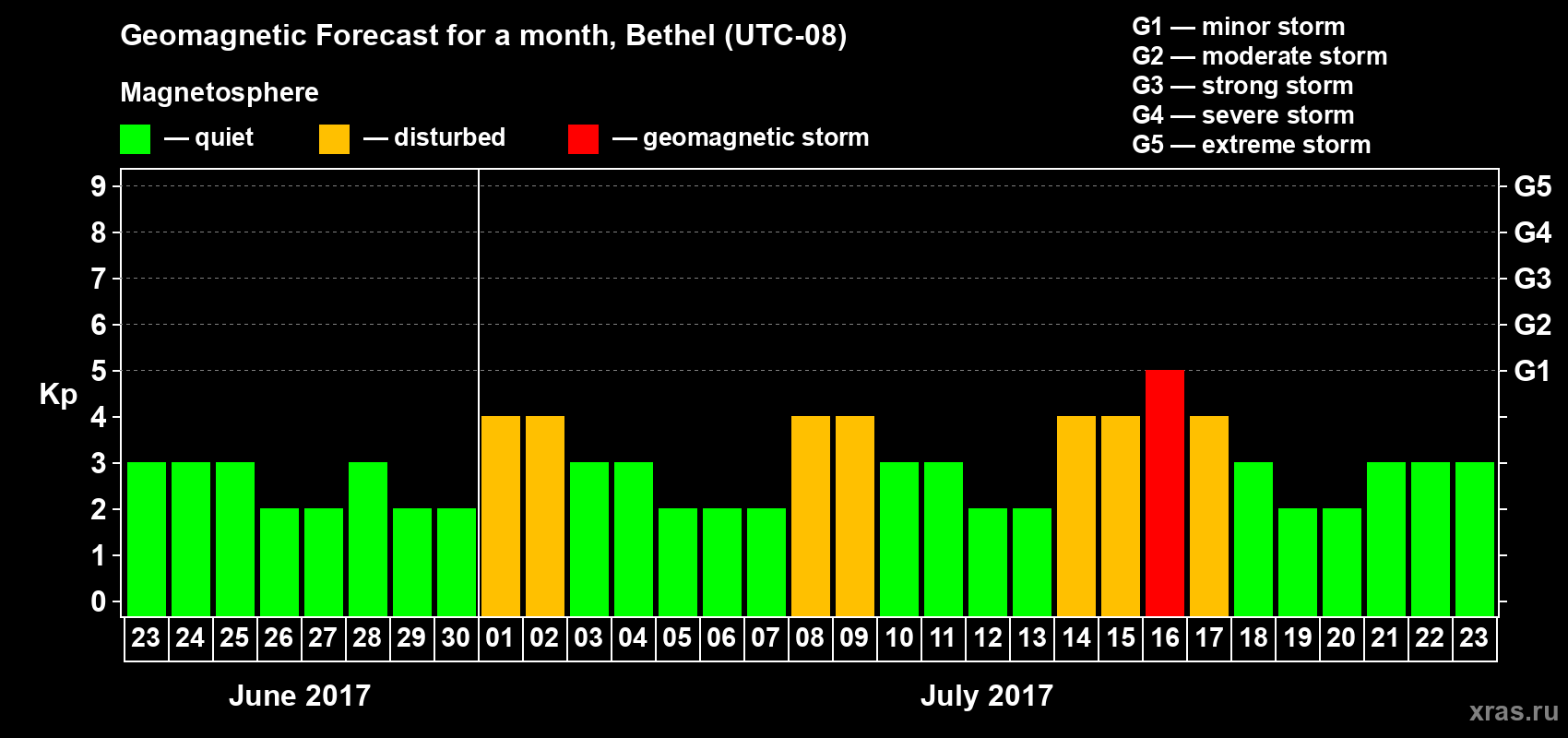 Geomagnetic storm forecast in Bethel for Jun 23, 2017