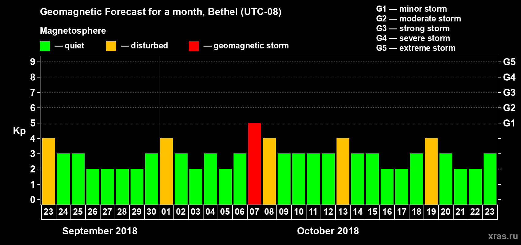 Geomagnetic storm forecast in Bethel for Sep 23, 2018