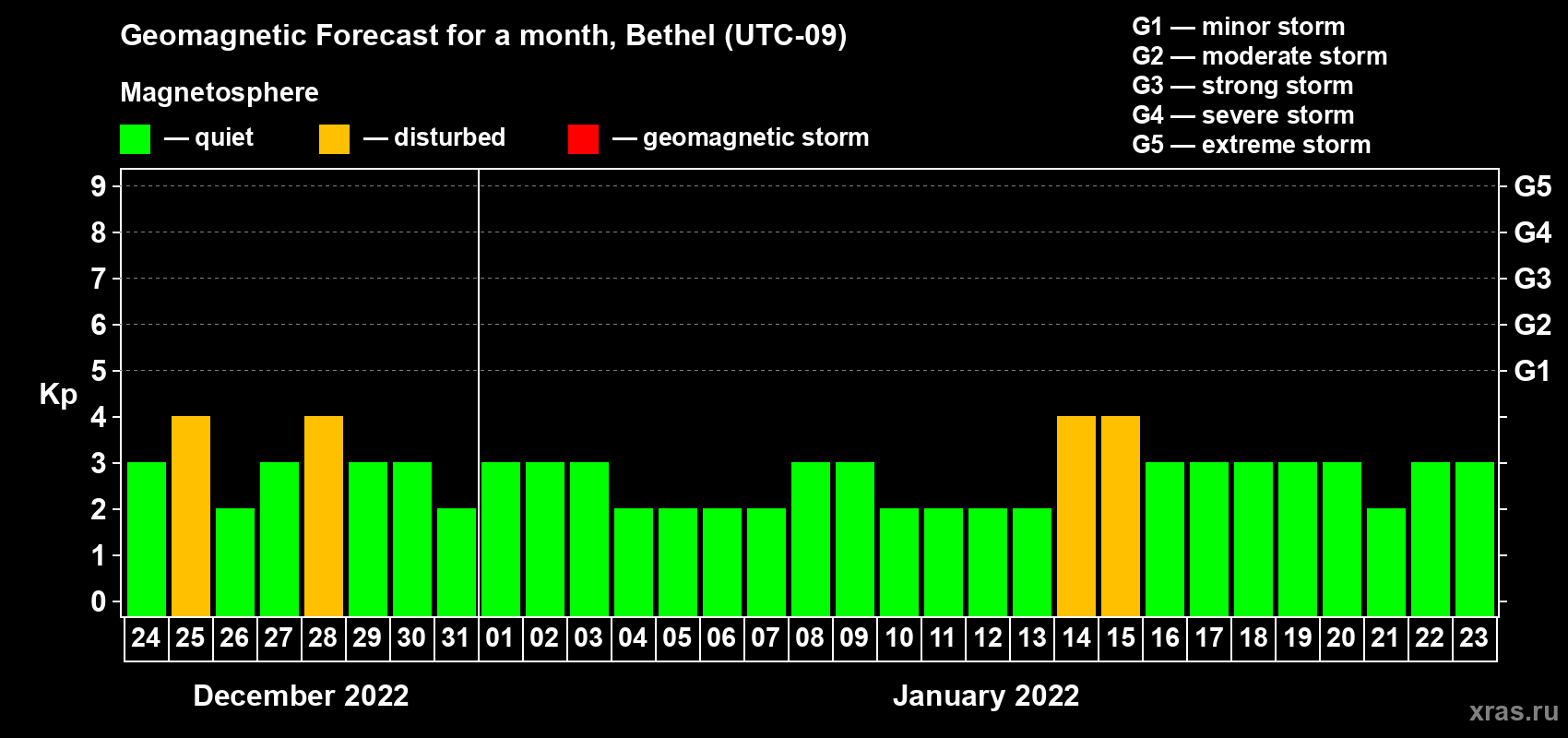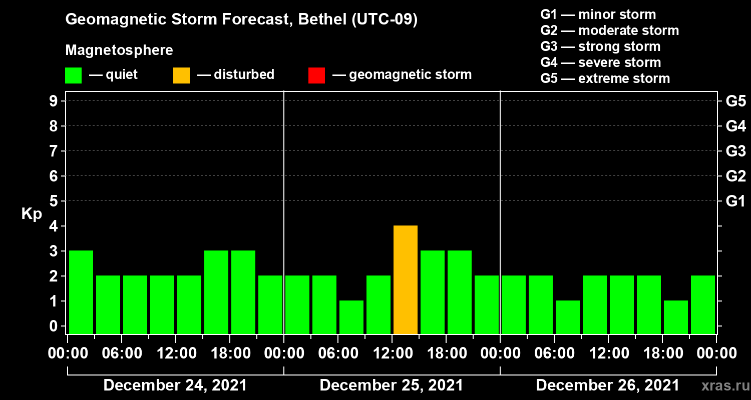 Geomagnetic storm forecast in Bethel for Dec 24, 2021